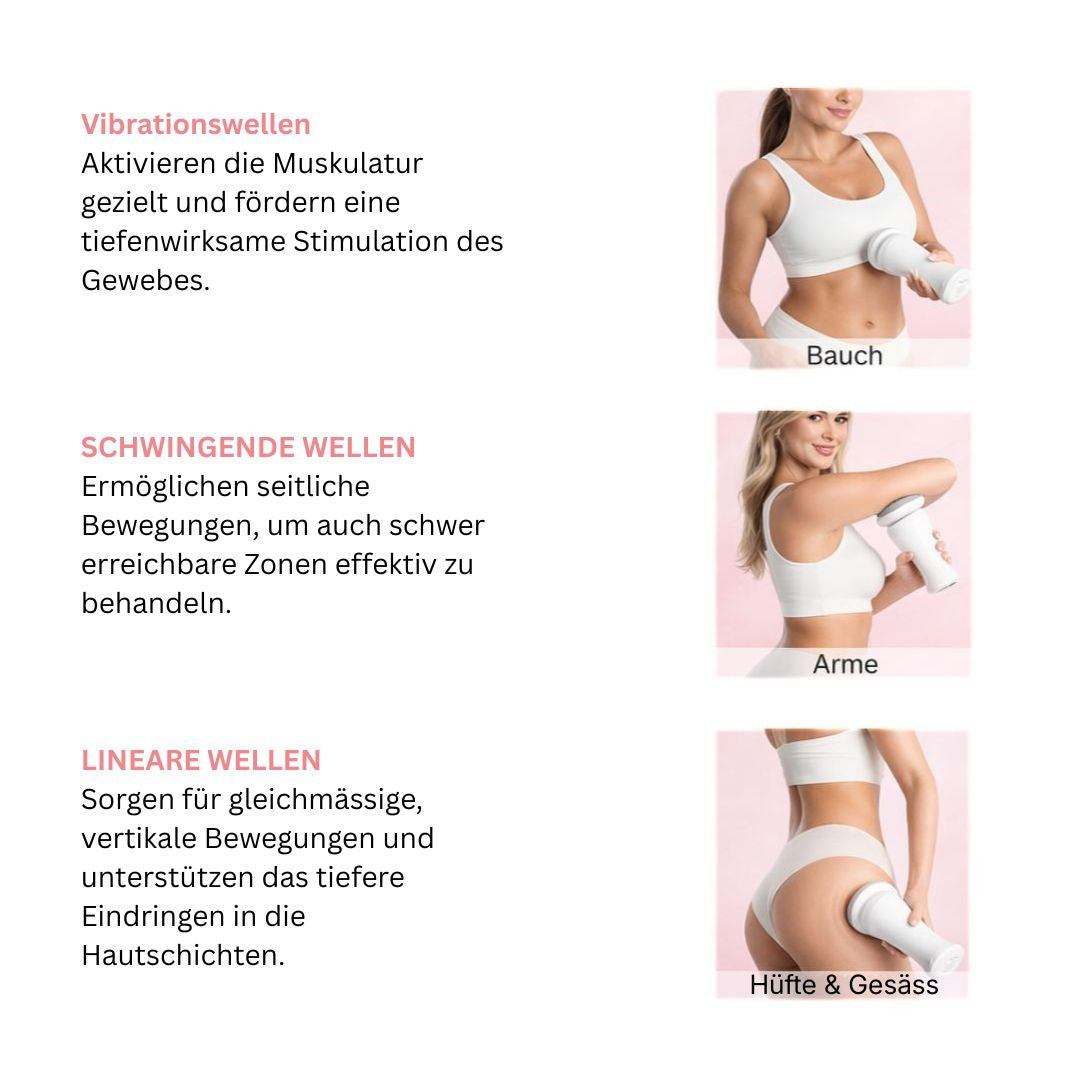 Unsere Sculptura™ arbeitet mit bis zu 3.800 Bewegungen pro Minute und regt die Durchblutung sowie die Stimulation des Gewebes an. Die Anwendung ähnelt einer intensiven Körpermassage
